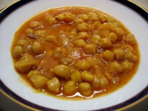 Pişen nohuta yağ, salçalar, baharatlar ve yarım ay şeklinde iri doğranmış soğanlar eklenir .
