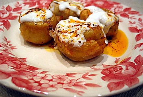 Sarımsaklı yoğurt ve pulbiberli sos ile servis yapın.