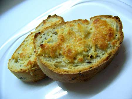 Sarımsakları soyun 1 sarımsak dişini bıçakla ortadan ayırın her bir dilim ekmeğin yağlanmış yüzeyine sürün.