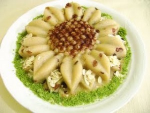 Üzerine soğuk sütü, suyu ve toz şekeri döküyor ve yavaş yavaş koyulaşıp katılaşınca ocağın ateşini kapatıp kapağını örtüyoruz. 5 dk. dinlendirip sonra kapağını açıp, karıştırıp, istediğiniz kalıba bastırıp ters çeviriyor ve üzerine krokanları döküp servis yapıyoruz.