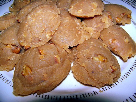 Üzerine hindistan cevizi, fıstık ve buna benzer şeyler seperek servis yapılır.
