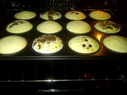 Üzerlerine çikolata cipsi ile süsle. 180°C derece önceden ısıtılmış fırında 20 dakika pişiriyoruz. Afiyet olsun…