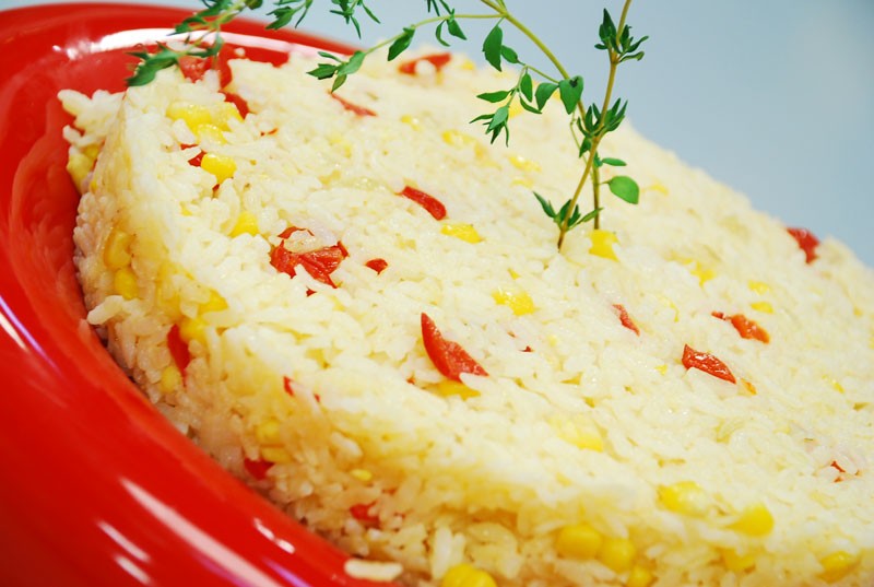 Pirincin üzerine kırmızı biberleri ilave edin.