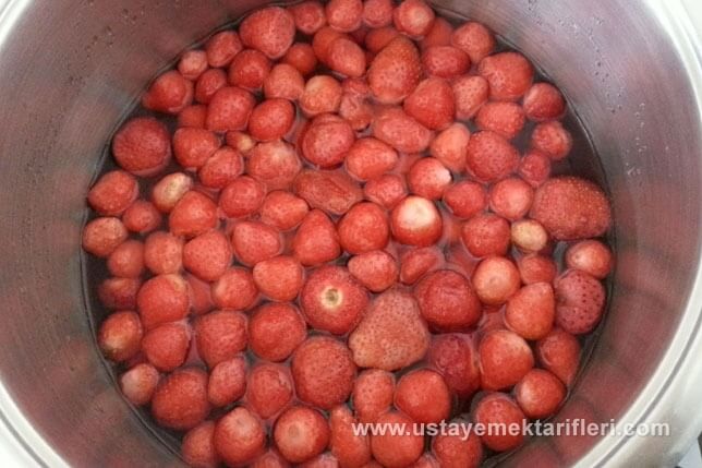 (şekerler tamamen erimiş ve çilekler kendi sularının içinde yüzüyor olmalılar)