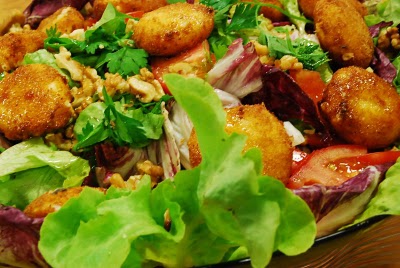 Yeşilliklerin üzerine kıazrmış olan peynir toplarını ilave edip servis edin.