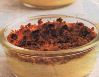 Üzerine yumurtalı muhallebiyi paylaştırıp ufalanmış bisküvi kırıntılarını serpelim.