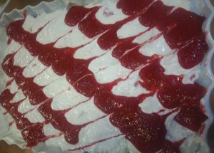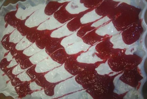 En son kalan çilekleri püre yapıp şerit şerit döküp çatalla çekerek şekil verin.