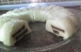 Ilınan helvadan biraz alınıp kaşığın içerisine bastırılır ve ters çevrilerek kaşıktan çıkartılıp servis tabağına dizilir.