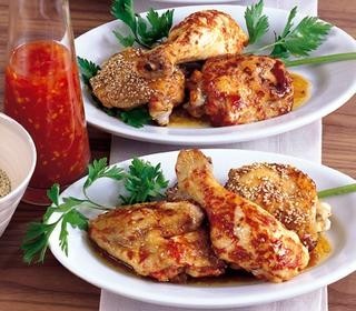 Acı biber sosu ile tatlandırın ve kalan piliçleri de bu marinatın içine bulayın.