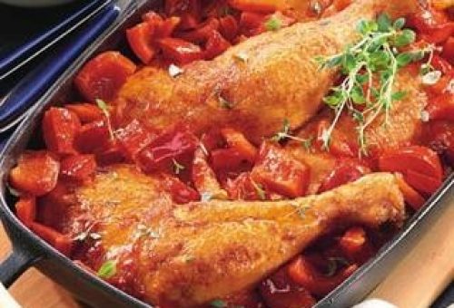 Tavuk butlarının üzerine kırmızı toz biber serpip biber küpleri ile birlikte tavaya ilave edin.