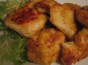 Bir kapta diğer tüm malzemeleri karıştırıyoruz ve üzerindeki fazla ununu silkelediğimiz tavukları bu karışımın içine koyup iyice buluyoruz.